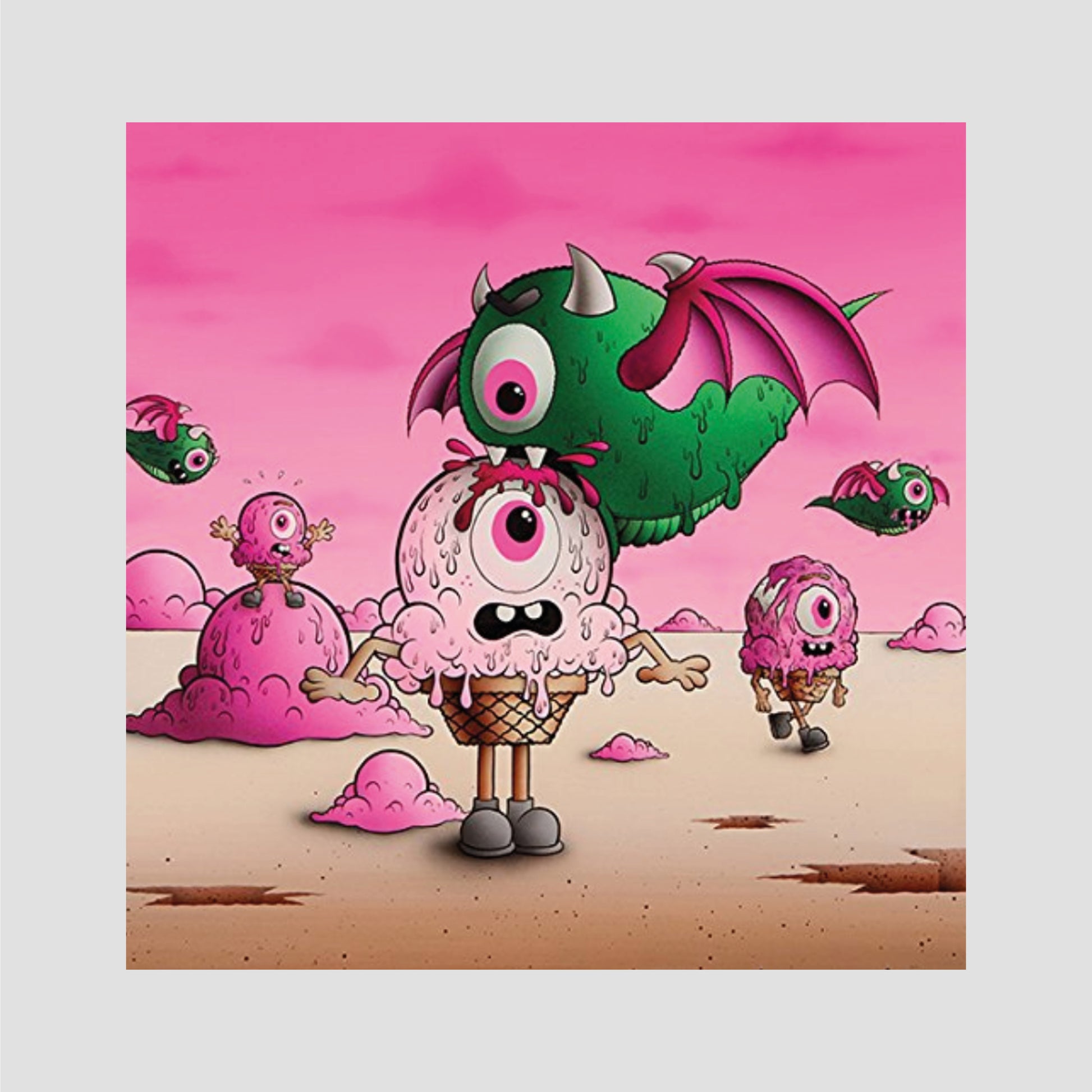 An inveterate traveler, painter of walls and canvases alike, sculptor of deranged toys and a fan of the color pink, the enigmatic artist Buff Monster surprises and amuses in all mediums. In his latest monograph, Stay Melty, Buff collects his works in progress, paintings, murals, posters, stickers, Melty Misfits trading cards and toys. As it’s hard to keep up with this energetic artist’s output, fans will be grateful to find much of his recent work in one compact volume. Buff Monster grew up in Hawaii, lived and worked in Los Angeles and currently resides in New York City.