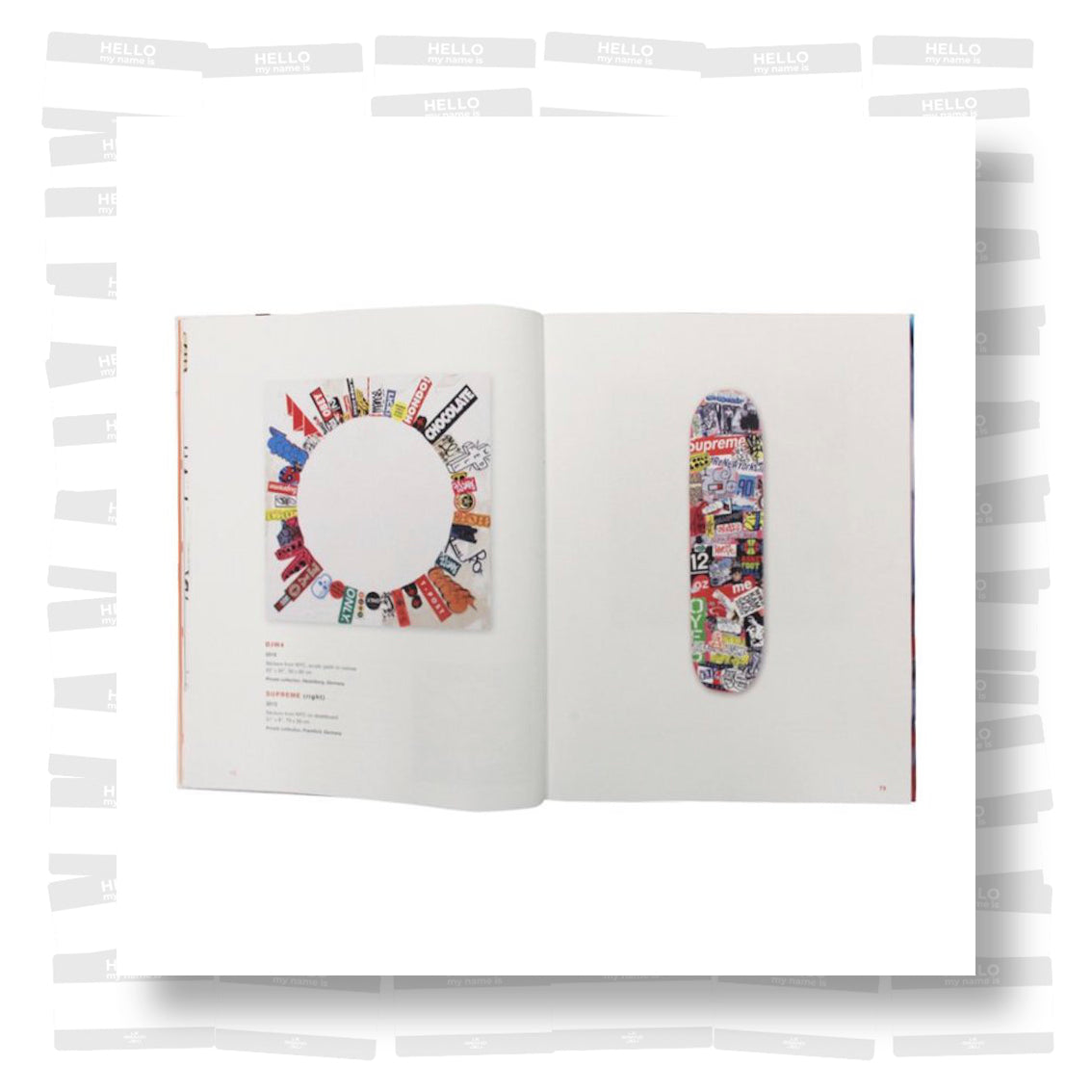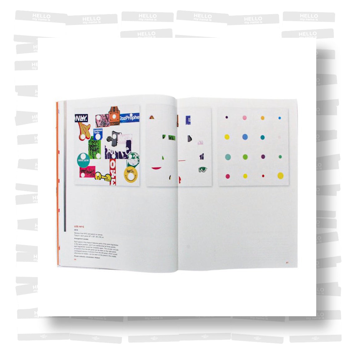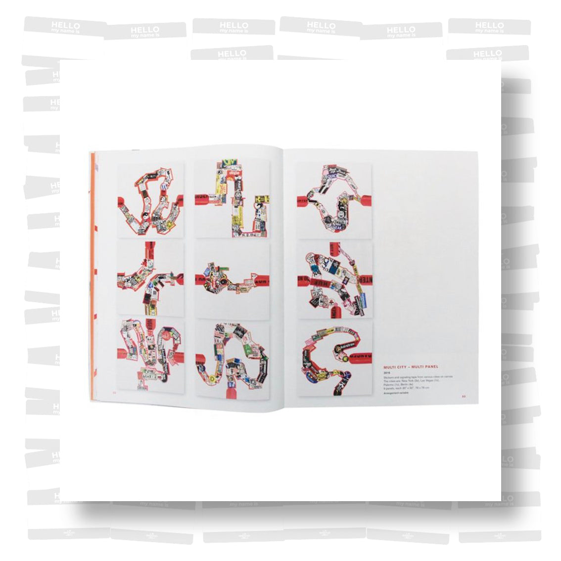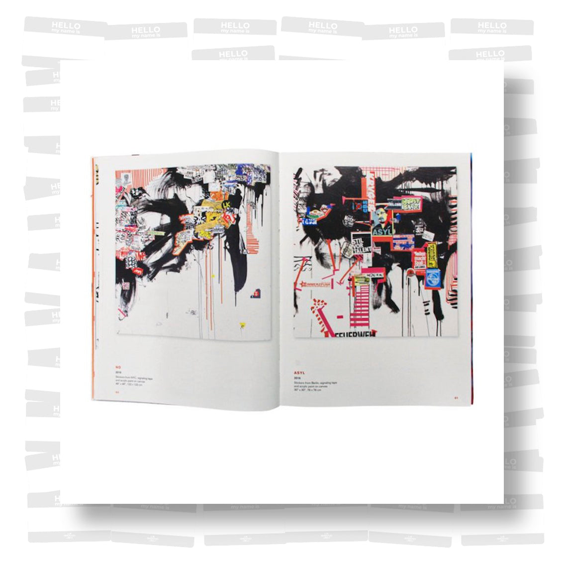 The Devandalized book documents the recycling “communication” from appropriated stickers, graffiti tags on visitor ID labels and similar items, and other fragments of urban signatures found on the streets of various cities around the world from 1987-2017. These artifacts of urban life are then regrouped onto canvases in chaotic, semi-random, or well-defined (geometric) compositions, which emanate contemporary culture. The work straddles numerous fences and encompasses several categories: Painting, conceptual art, and collage all come into play as he vandalizes the vandals. Yet, Zippel has “immortalized” the stickers by scraping them from their ephemeral placements on city streets and re-affixing them to canvas. Weathered and tattered, fragmented and battered, he feels that their war-torn condition confirms their authenticity. With a multi-edged blade Egon Zippel has developed a new twist on urban archeology.
