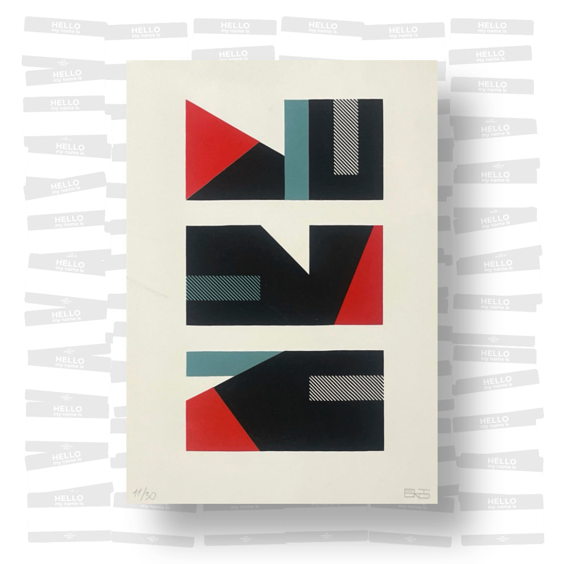 Inspired by the geometric composition of his mural, this print reinterprets his minimalist visual language in three colors, following a logic of calculated variation.