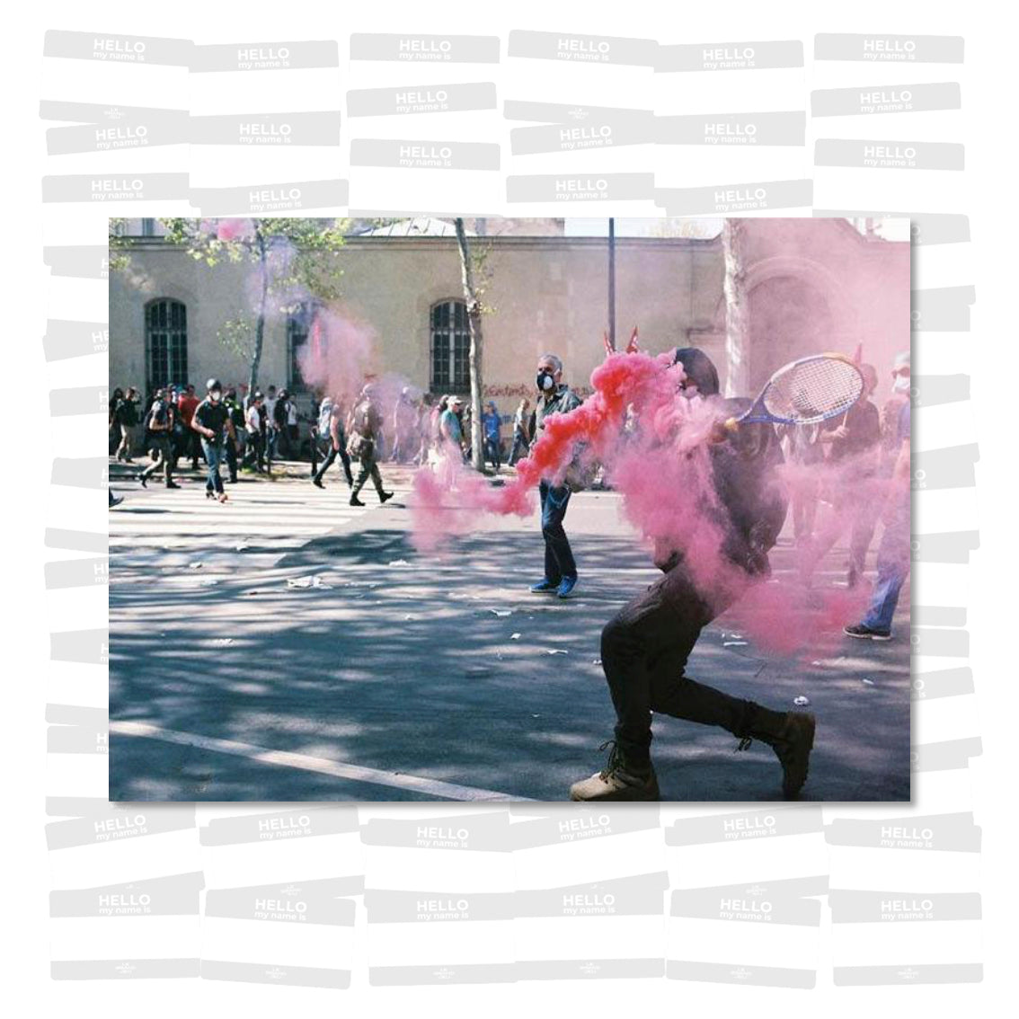 Genesis Lacrima, « that generates tears », is a book designed as a mirror, opposing two visions of social conflicts in the streets of Paris. Émilie Royer delivers an analog color report on demonstrators of all kinds, while Arnaud Sommier on his part investigates police forces actions, and documents them on black and white film. The two sides of the book confront each other : each page in color is designed as an answer to a black and white page to reveal the two sides of a violent event. For both authors, it is essential to understand the moral and political destruction of society through getting as close as possible to the conflict, and to document it with the help of an analog camera.