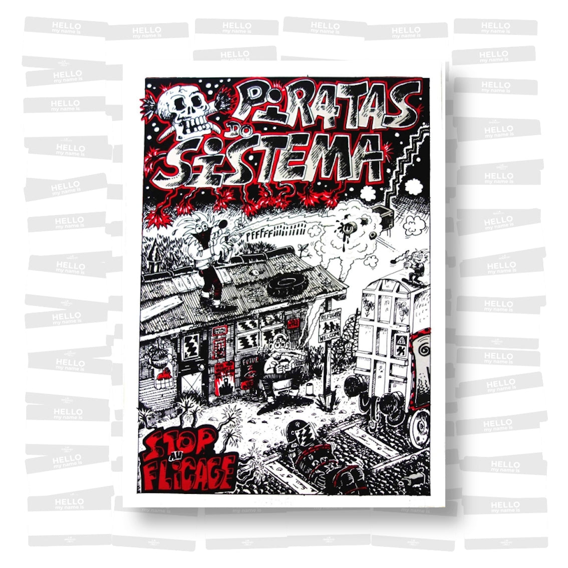 Drawn from a graphic approach close to his fanzines, this silkscreen print revisits the visual universe developed by Juju around urban margins and underground narratives.