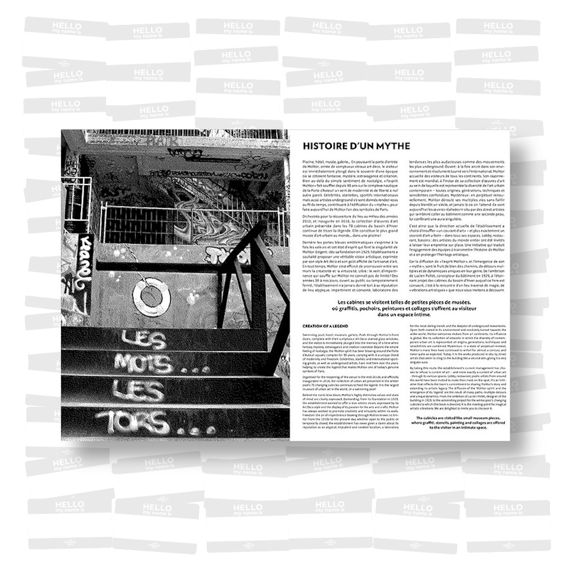 Depuis trois décennies, le nom de Molitor est intimement lié à l’histoire du street art. Temple de l’underground dans les années 1990-2000, alors qu’il était abandonné, l’établissement a développé dès sa réouverture, en 2014, une démarche curatoriale ambitieuse, fidèle à l’esprit de cette période. Il a ainsi permis à quelque 68 artistes urbains, toutes générations et techniques confondues, d’investir chacun l’une des cabines de l’emblématique bassin d’hiver, pour y créer librement une oeuvre.