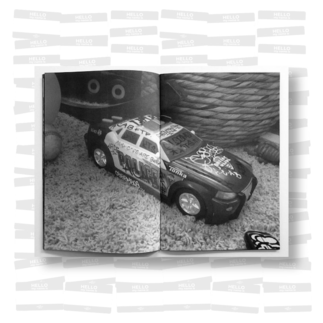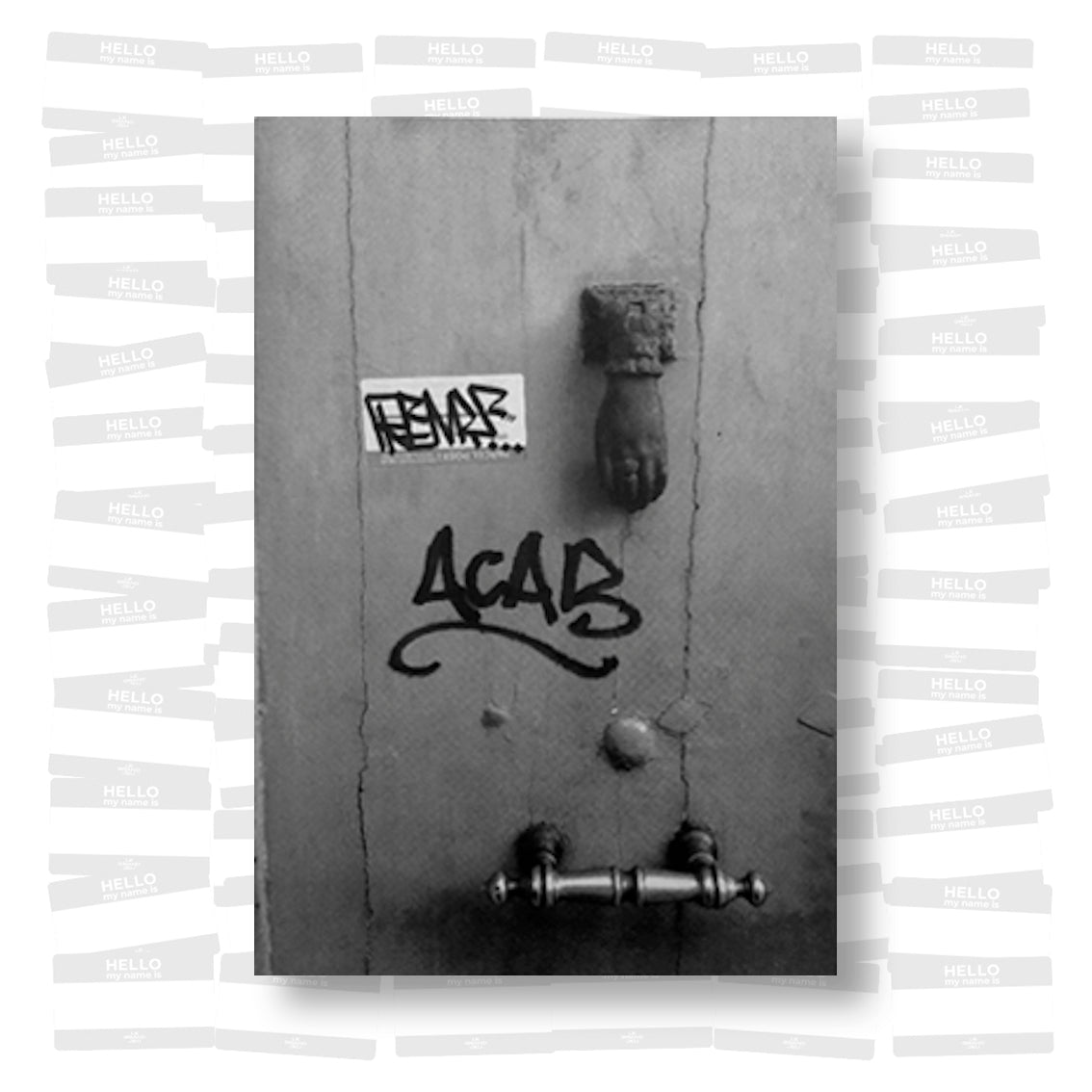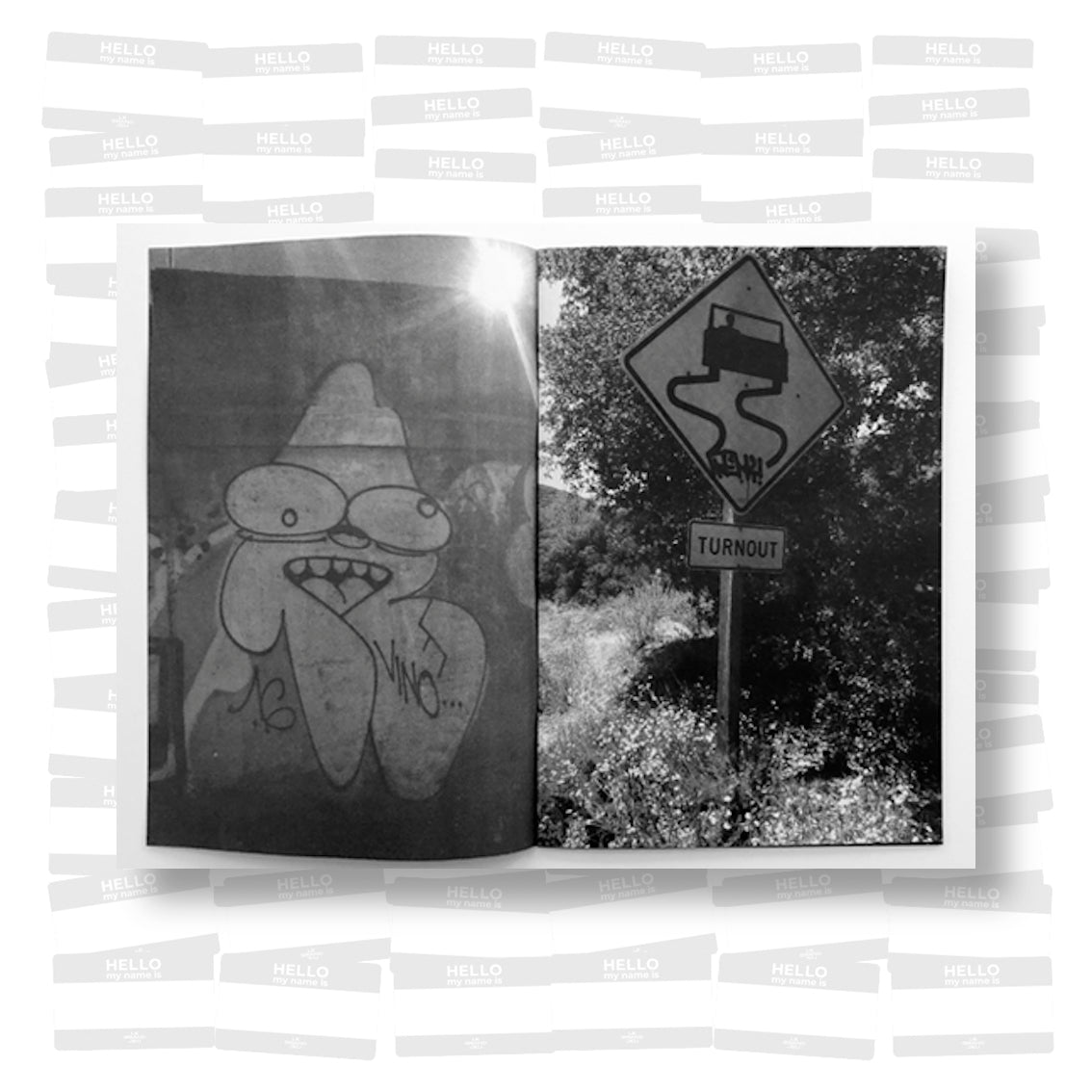 Graffiti artist Remio presents a series of black-and-white images of his work in locations ranging from the side of a truck, the support beneath a highway overpass, and a Salvation Army sidewalk sign. The variety of spaces Remio has been able to place his work speaks to the far-reaching capabilities of graffiti as a distinctly public form of art, reinforcing its nature of democratic access and dissemination.