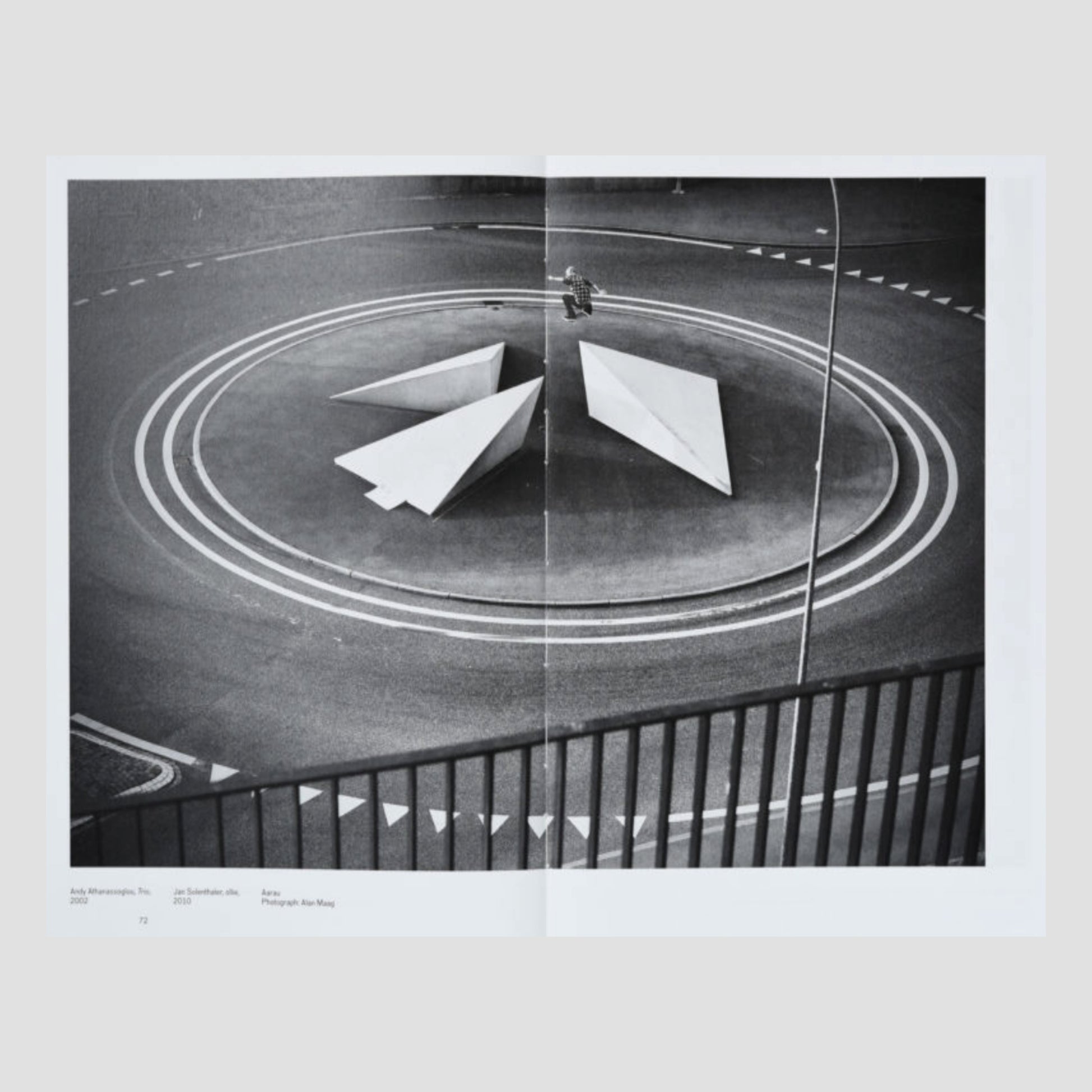 Riding Modern Art brings together a collection of 70 black and white photographs of people skateboarding on sculptures in public spaces. Through his study of the process of appropriation and reuse of works of art in public places, used by skateboarders as further challenges for their sport, Raphaël Zarka offers a way of approaching a work of art that underlines the dynamism of modern sculpture, casting a critical light on the idea of movement in these often abstract and geometric works, inspired by Cubist, Futurist or Constructivist art.