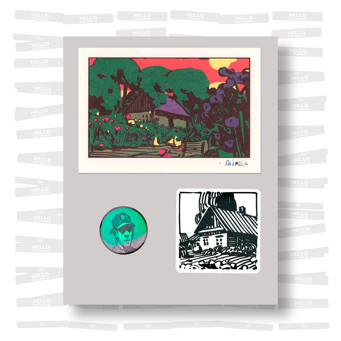 3) Postcard 16x11,5 cm (6.3 x 4.5 in); Limited edition postcard, created by Sainer for "Modulations Set". Hot-stamped holographic artist’s signature on the bottom right.