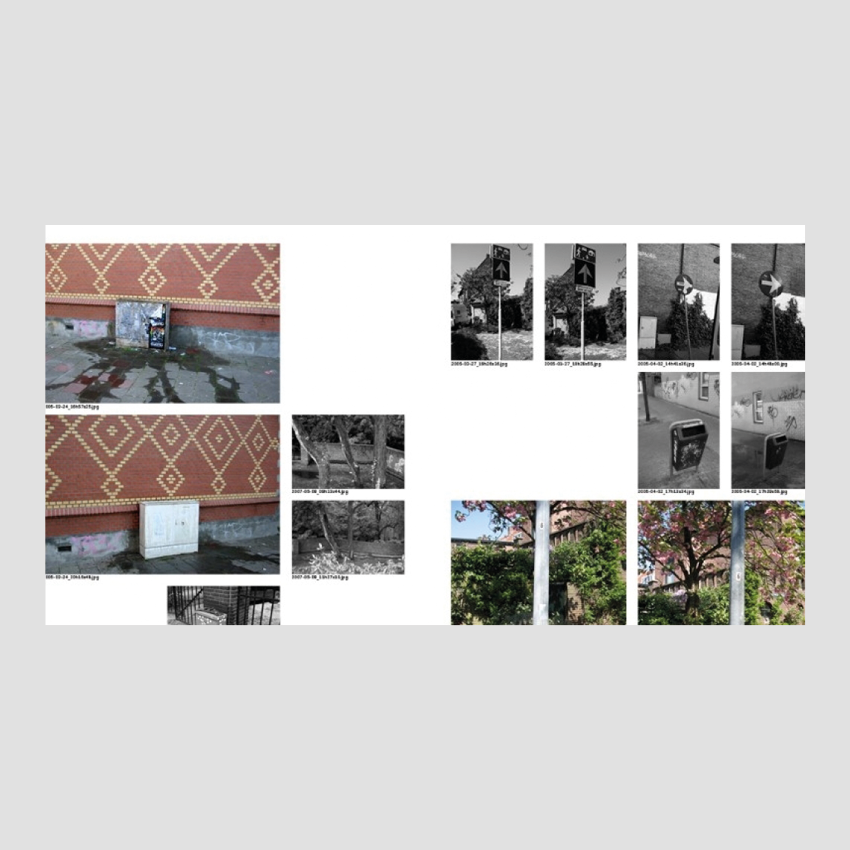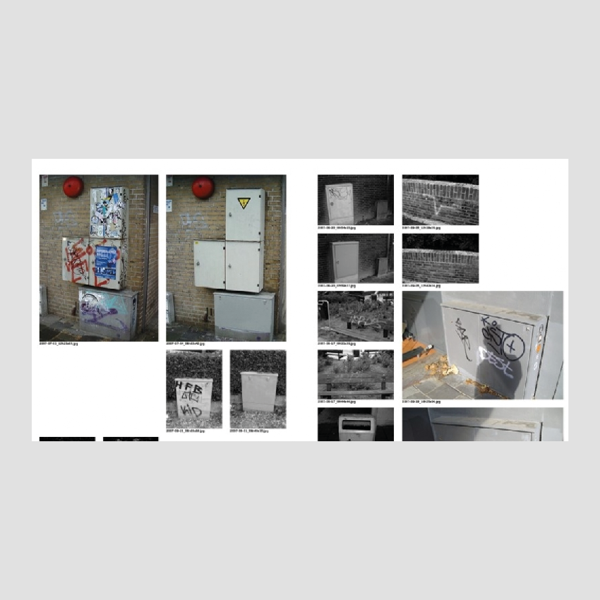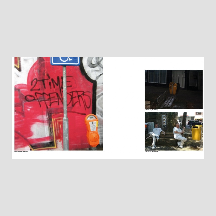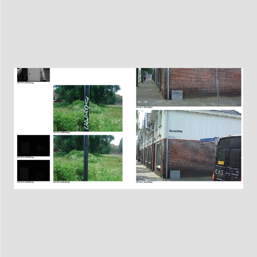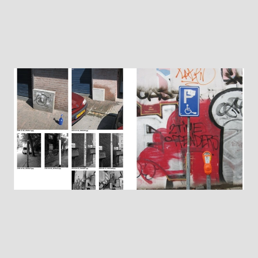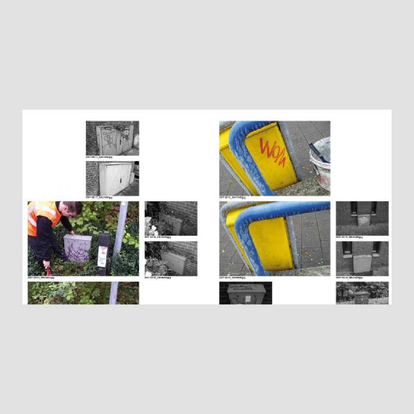 The starting point for this project was a massive database of pictures taken by cleaning companies that were hired between 2005 and 2013 by the municipality of Eindhoven, a medium sized Dutch city known for its industrial heritage and Philips factories. The cleaning companies were commissioned to remove graffiti and stickers from municipal property in the public space. As evidence for their work they took two photos on every job, one before cleaning and one after. During the 6 years that this work had been done 50,000 photos were taken and stored. Vincent Wittenberg and Wladimir Manshanden were able to seize this bizarre archive and quickly saw the historical value of it.